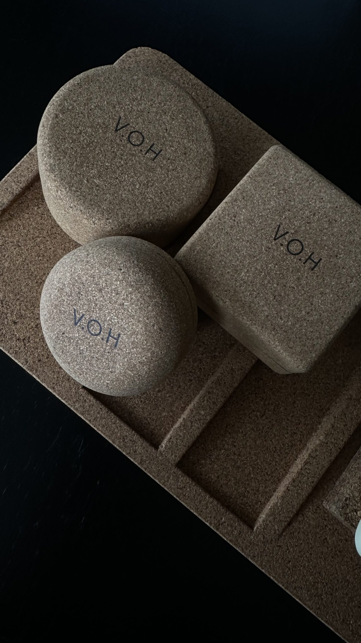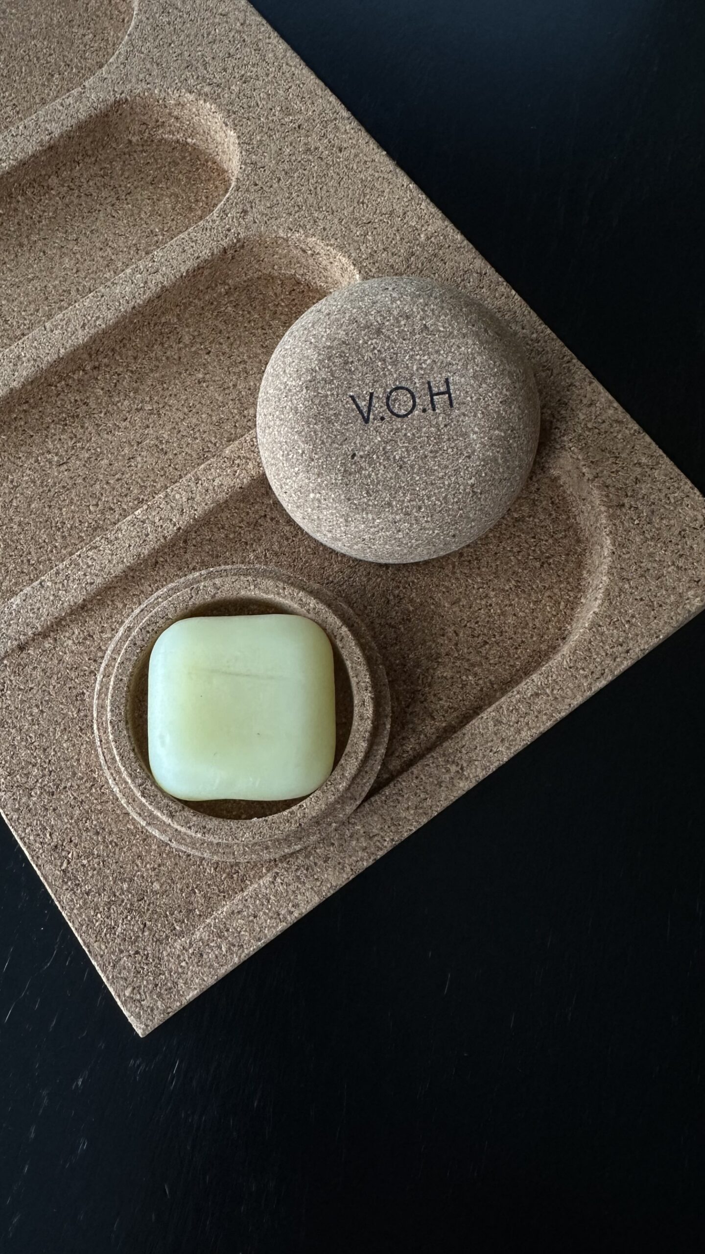 Korgipuust ümmargune karp, mis on mõeldud spetsiaalselt V.O.H tahkele meigieemaldajale.